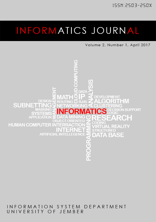 Cover Authors Saiful Bukhori Sistem Informasi,Universitas Jember Downloads Download data is not yet available. Additional Files Cover Published 2017-05-30 Issue Vol. 2 No. 1 (2017): INFORMAL: INFORMATICS JOURNAL Section Information System